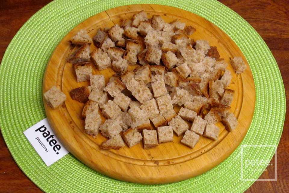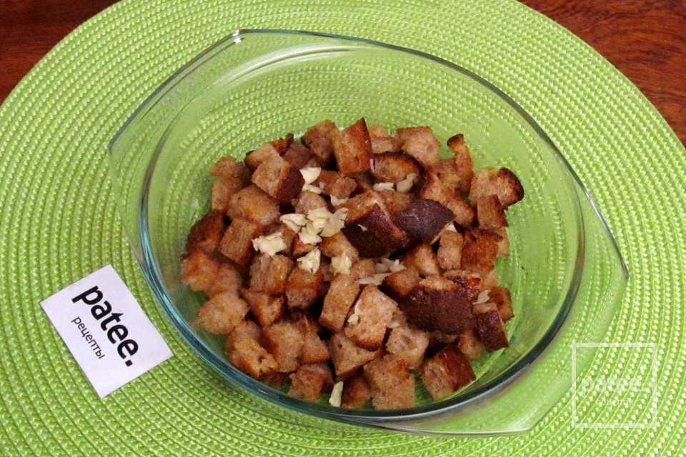 Сюда же добавляем остывшие чесночные сухарики.