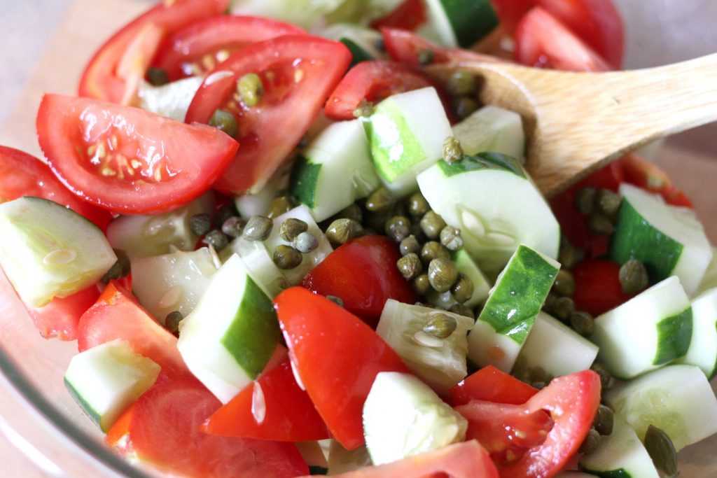 Одним из лучших рецептов салата с каперсами является овощной. Он очень прост в приготовлении, легкий и отлично подходит тем, кто находится на диетическом питании. Всем знакомый салат из овощей легко превратить в изысканное итальянское блюдо, просто добавив в него небольшое количество этих маринованных бутонов. Итак, для приготовления данного варианта блюда нам потребуются следующие овощи и прочие продукты: