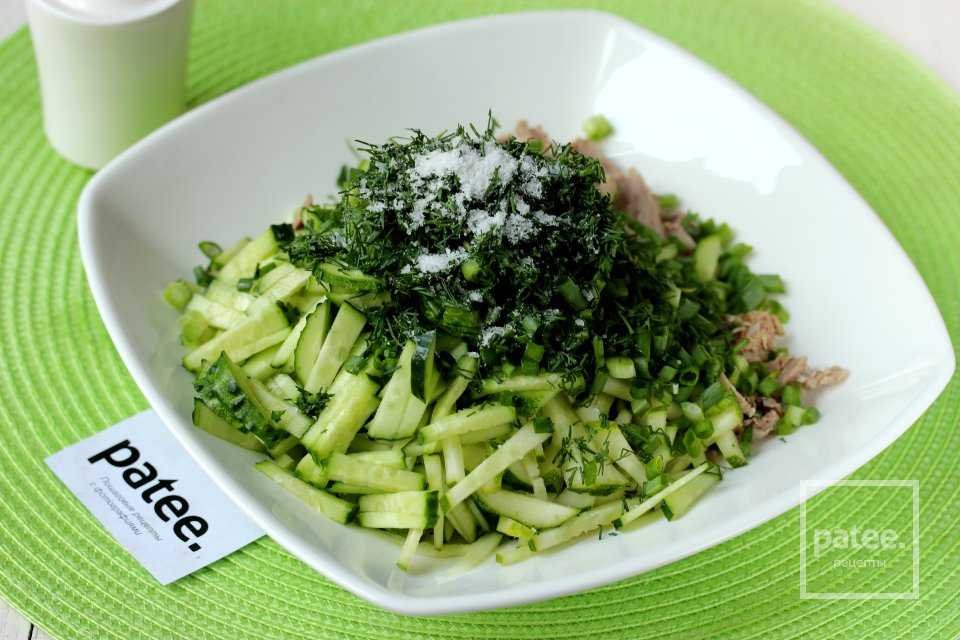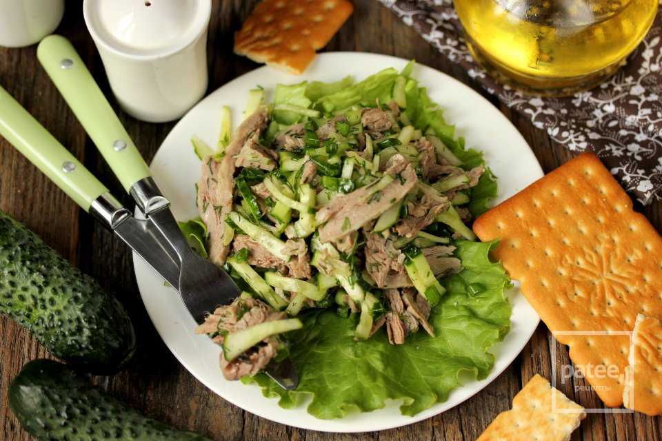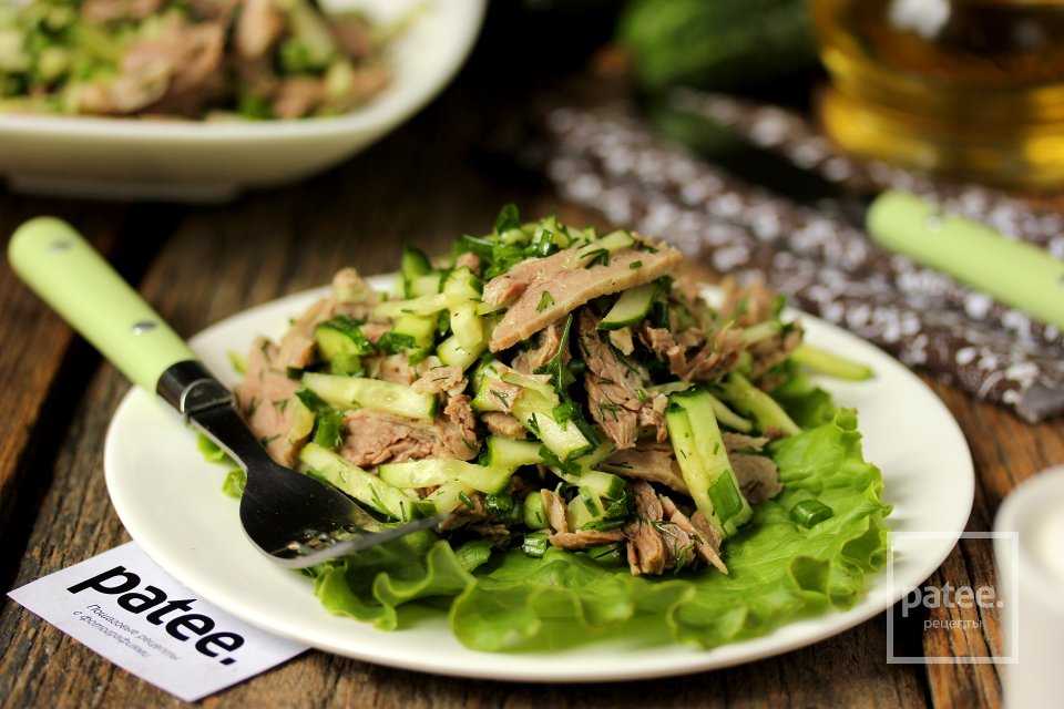 Описание рецепта — Салат с вареной говядиной и огурцом: