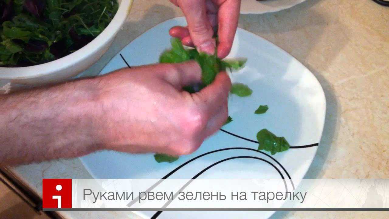 - Листья салата помыть, промокнуть салфеткой и порвать руками.