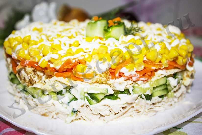 Новый вкусный салат — «Солнышко на столе», простой в приготовлении праздничный слоеный салат с кукурузой и яичным омлетом, приготовьте такой салат на любое торжество, и гости по настоящему оценят ваше мастерство. Рецепт салата «Солнышко на столе» выполнен с подробными пошаговыми фото.