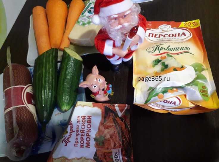 Ингредиенты для простого приготовления вкусного новогоднего салата с сухариками