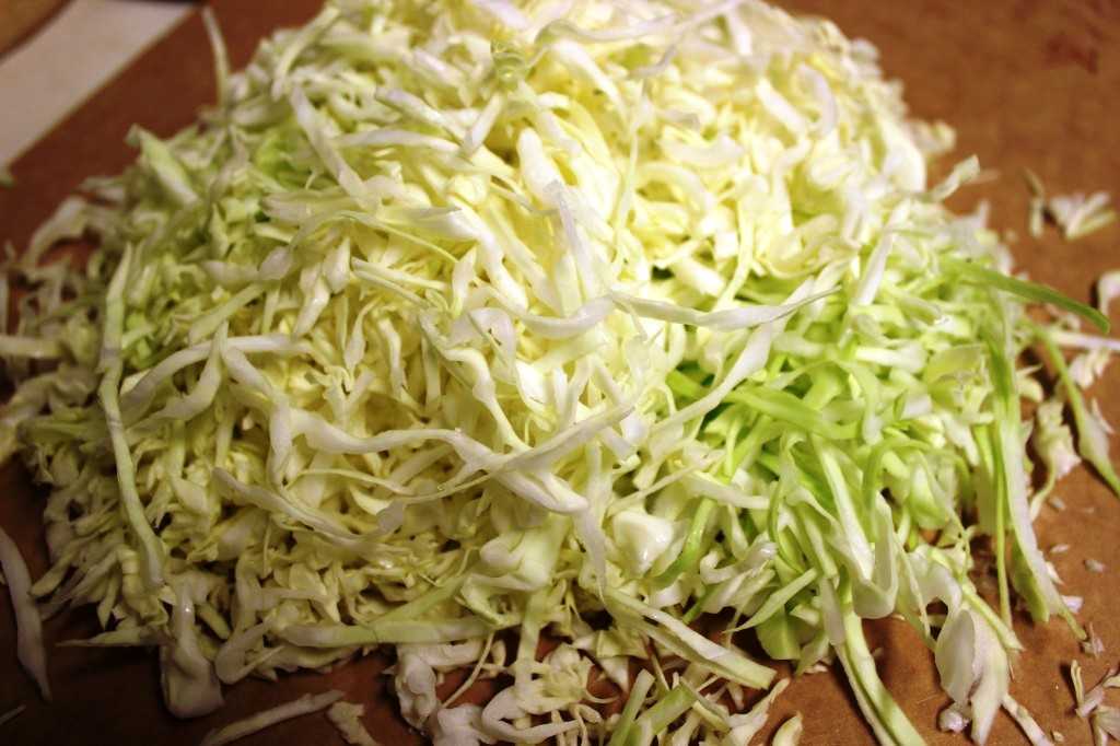 - Капусту моем, обсушиваем, мелко шинкуем.