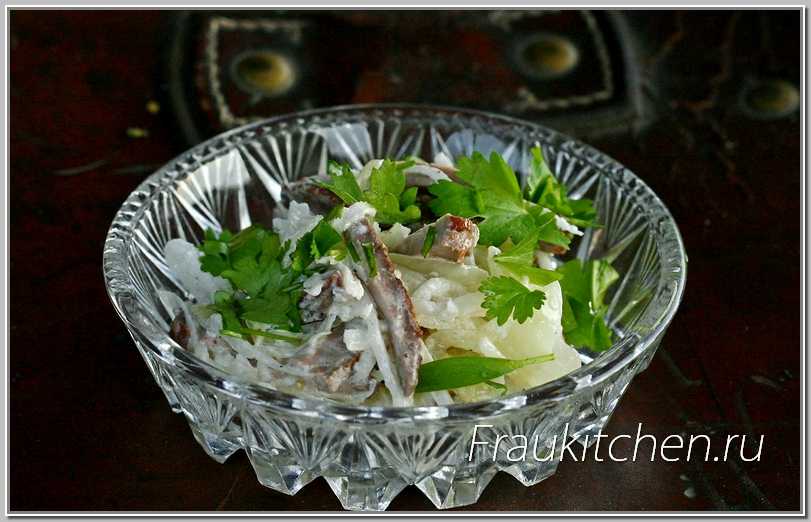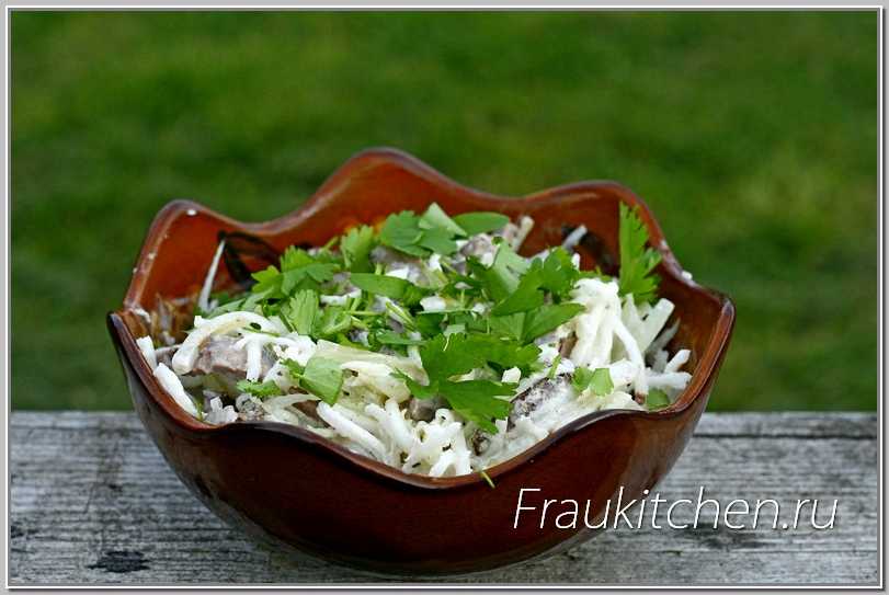 - Салат «Костромской» с белой редькой и маринованными грибами