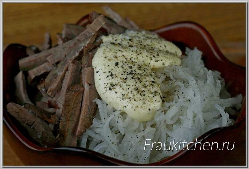 Рецепт 7: вкусный салат из белой редьки с говядиной