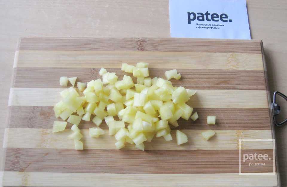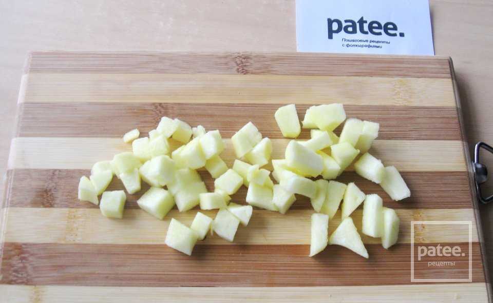 Яблоко моем, очищаем от кожуры и семенной коробочки. Мелко нарезаем.
