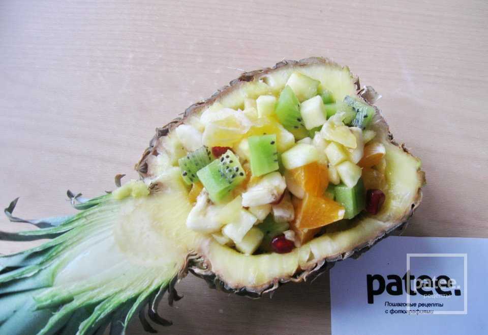 – — Вместо этого фруктового салата можно применить любой другой салат, в составе которого есть ананас.