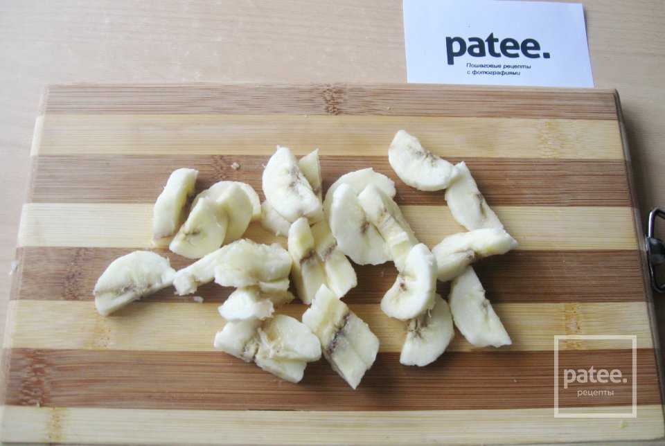 Добавляем в салатник нарезанный банан и зерна граната. Понадобится один небольшой гранат или половина крупного.