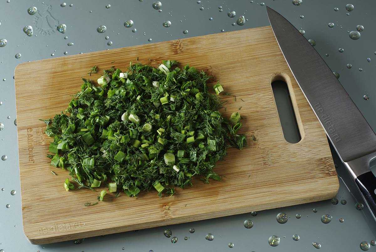 7. Свежую зелень вымыть, обсушить и мелко порубить.