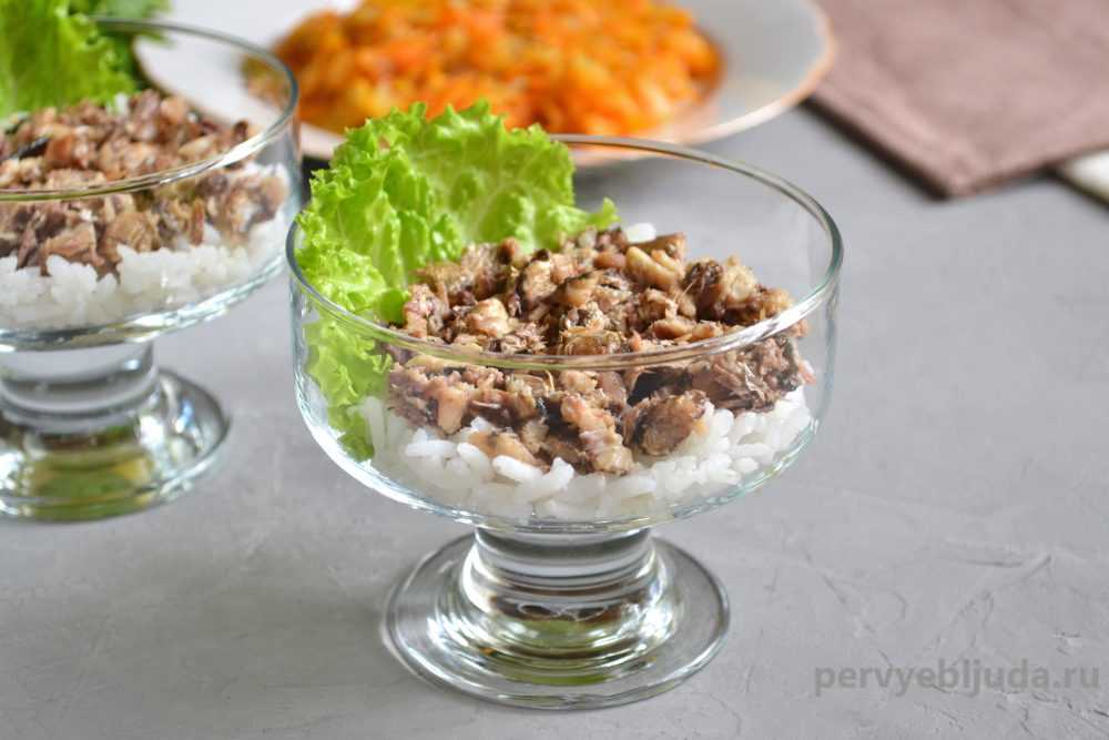 Рыбный салат из консервов с рисом рецепт приготовления:
