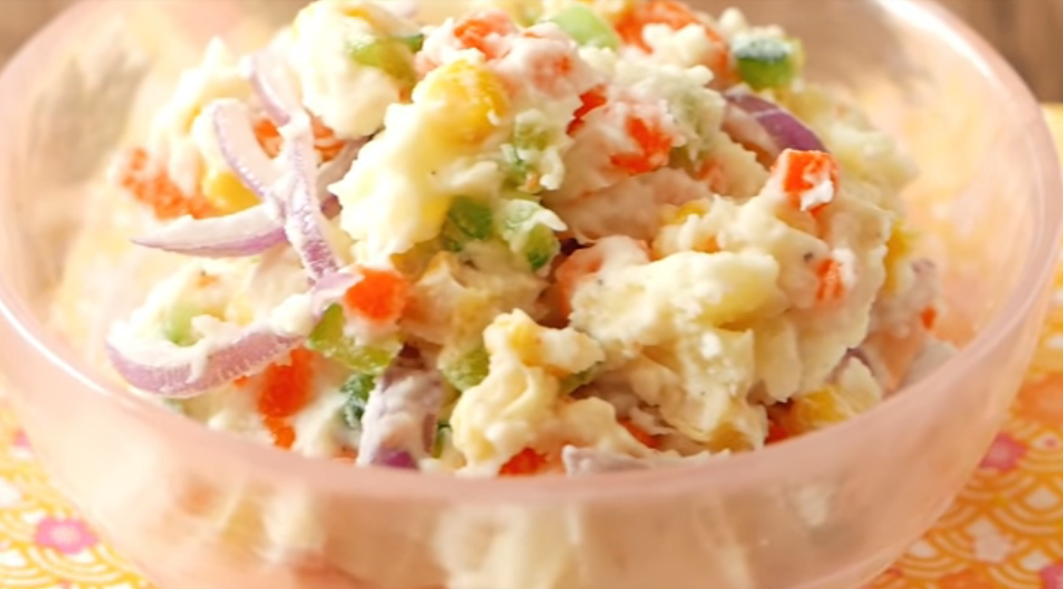 - Смешайте все ингредиенты. Заправьте соусом и все готово.