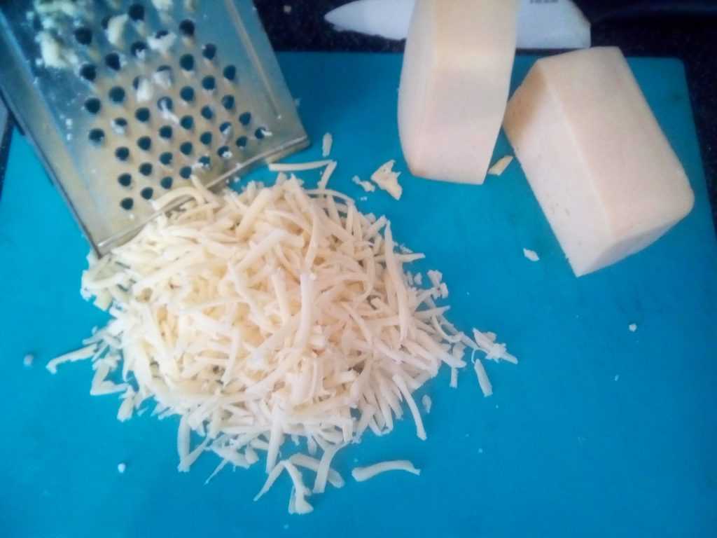 На крупное тёрке натираем сыр, лучше твердый сыр он лучше натирается