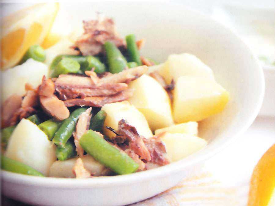 - Одновременно с картошкой проваривают и фасоль, потом откидывают ее на дуршлаг и помещают в этот же салатник.