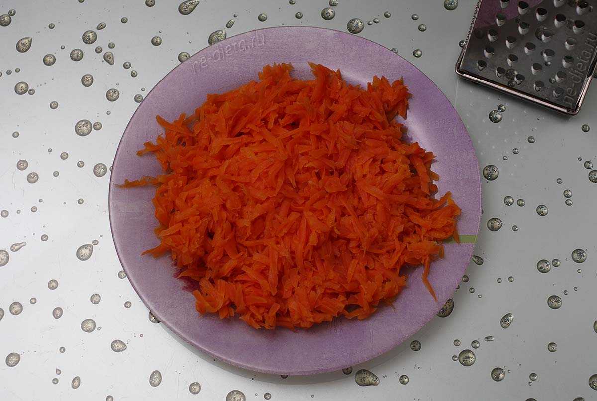 Морковь также почистить и натереть на крупной терке.