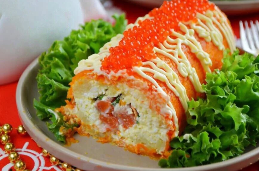 Салат с красной рыбой со звучным названием «Императрица», внешне похожий на настоящий закусочный торт, займет достойное место в праздничном меню. А сочетание семги с красной икрой действительно можно назвать императорским.