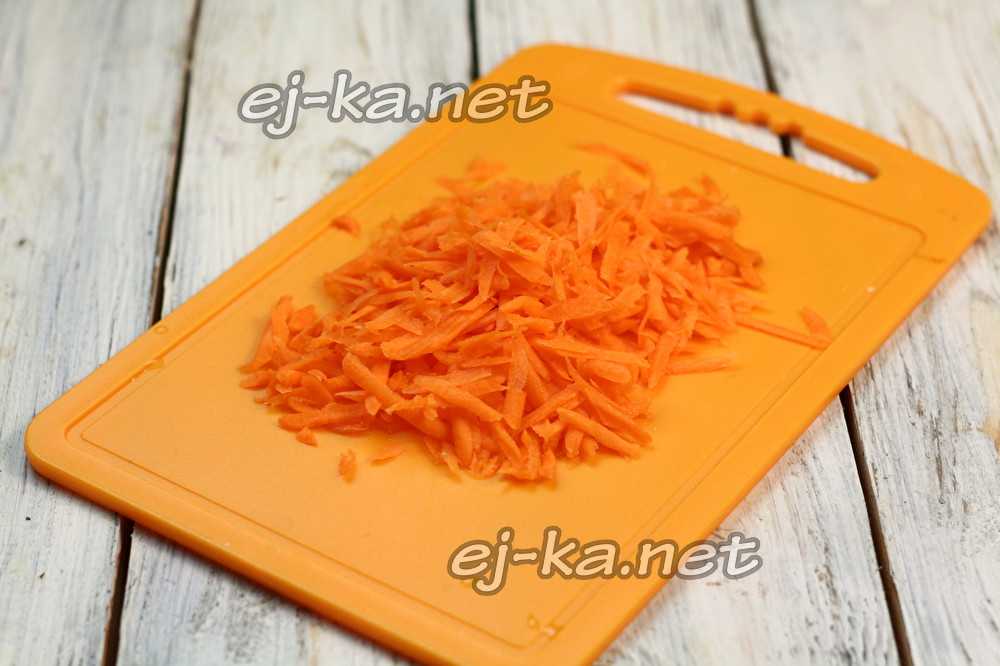 - Морковный корнеплод очищаем, промываем и натираем на средней терке.