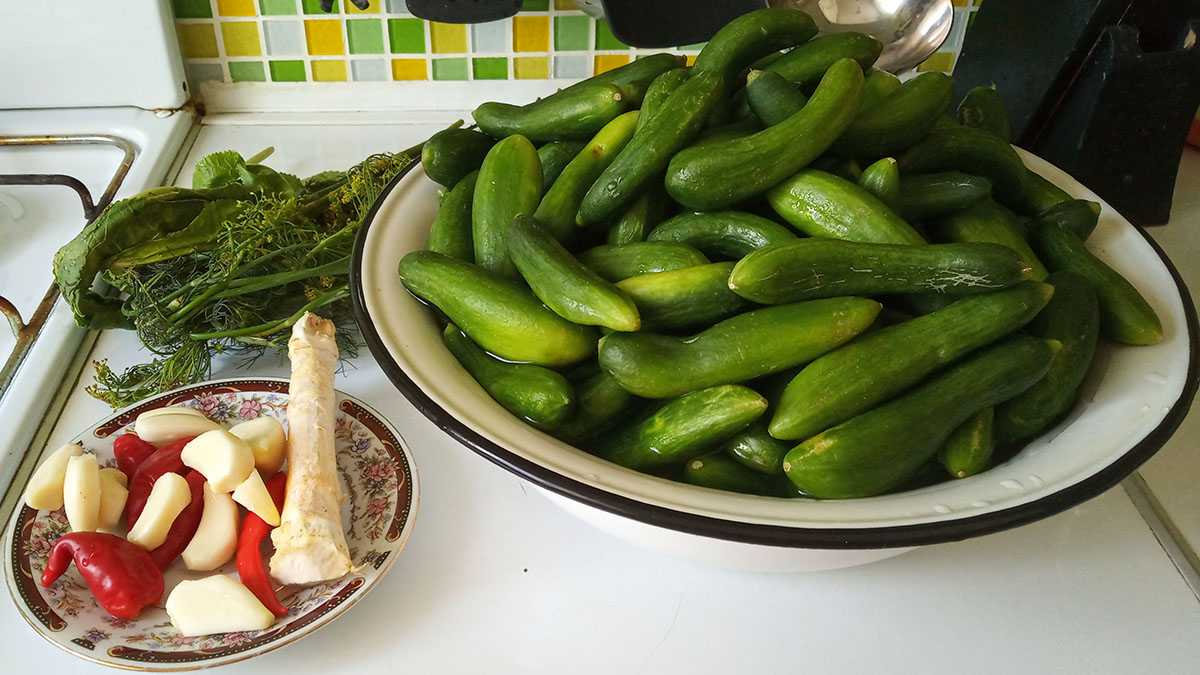 - Огурцы с грядки (нужны именно свежие) – 3 кг.