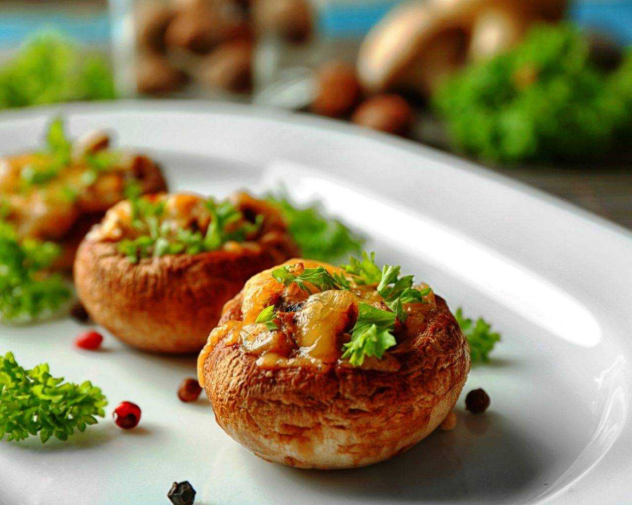 Выложить фаршированные грибочки в любую промасленную форму. Запекать их четверть часа при температуре в 200-210 градусов. Достаточно будет 7-8 минут. За это время сыр должен полностью расплавиться.