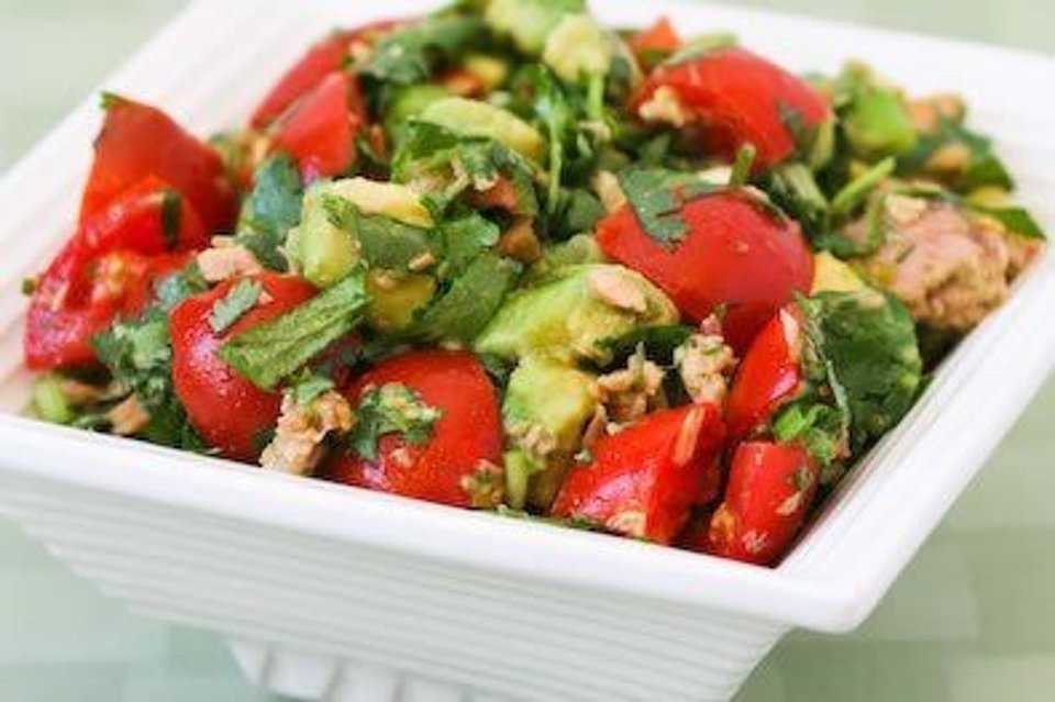 Этот экзотический фрукт дает салату здоровую, очень насыщенную сливочную массу без необходимости майонеза. Лимонный сок и кинза придают ему невероятный свежий аромат — это может стать вашим новым любимым салатом из тунца.