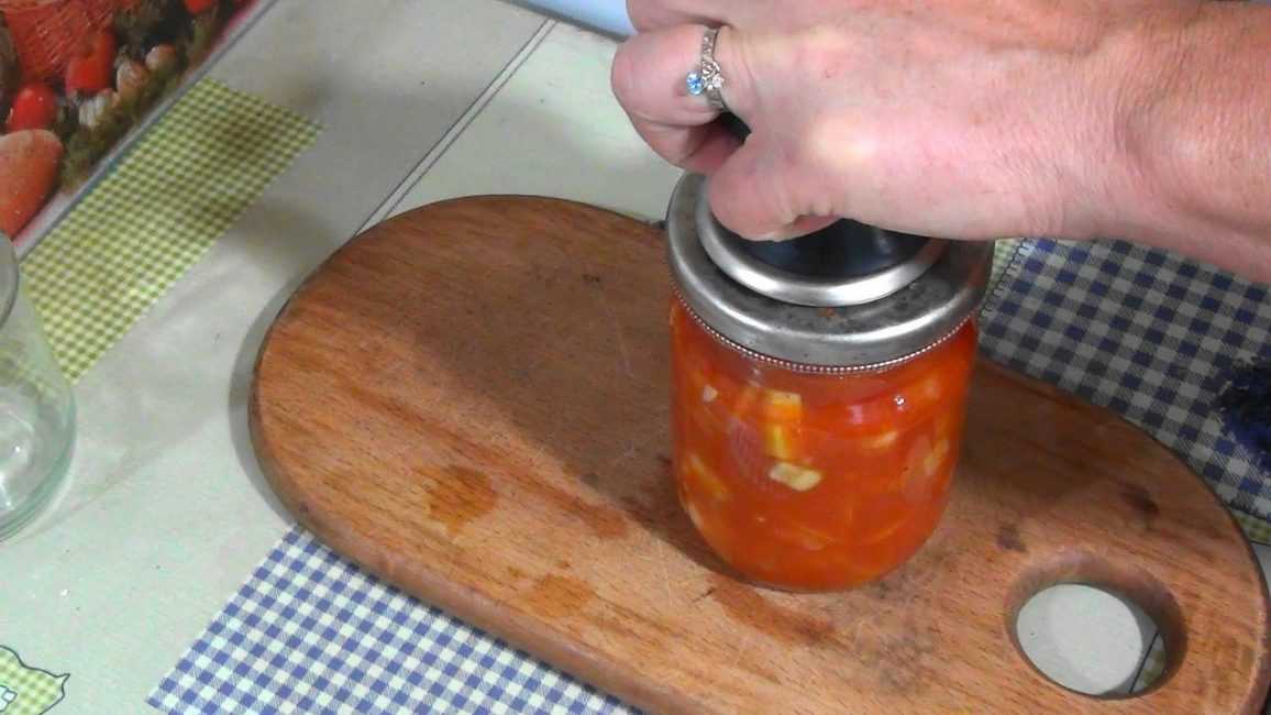 Для салата подойдут пол-литровые баночки, которые вместе с лечо пастеризуют.