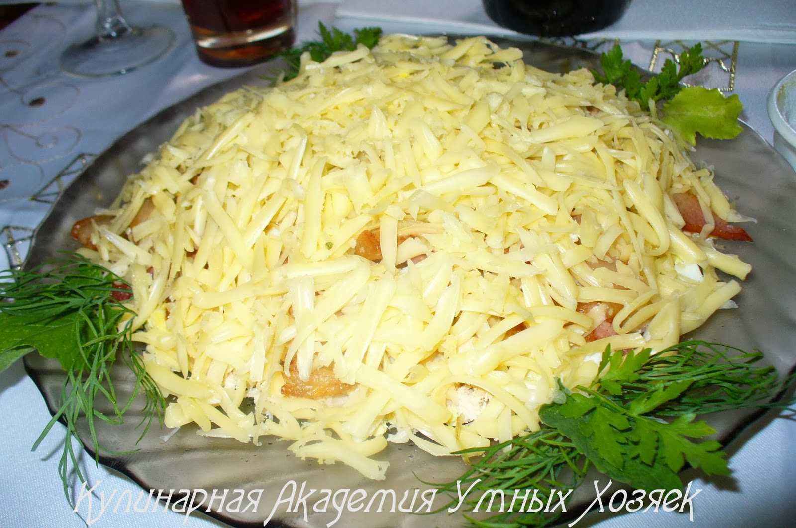 Традиционно слоеные салаты являются более предпочтительными для праздничного стола, потому как выглядят презентабельнее обычных и даже в разрезе смотрятся великолепно. На самом деле, сделать салатик слоями очень просто, но если нет желания придумывать хорошо сочетающиеся друг с другом прослойки, лучше воспользоваться проверенным рецептом.