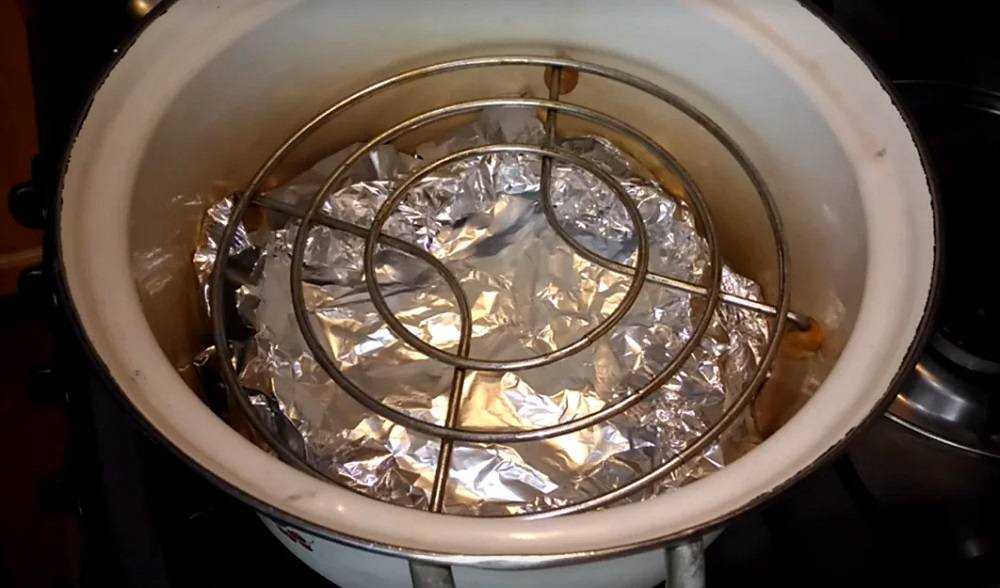 - Плотно заматывают фольгой так, чтобы дым не вышел наружу.