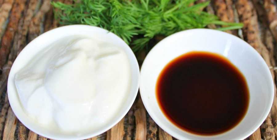 - 100 мл соевого соуса смешать с 50 мл кефира;