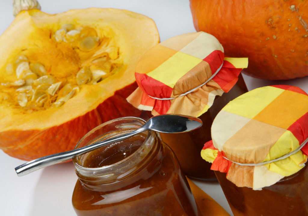 - Готовность блюда проверить следующим образом: тыквенные кусочки должны стать прозрачными. После этого разложить полуфабрикат в горячем виде по заранее стерилизованным баночкам, закупорить чистыми крышками.