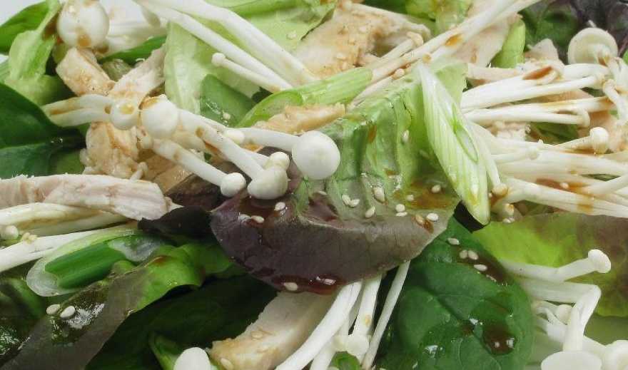 - Отварные эноки нужно добавить в салат перед самой подачей на стол.