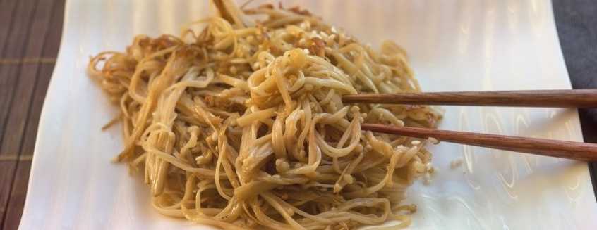 - В конце процесса жарки добавить соевый соус – он выгодно оттенит вкус эноков.