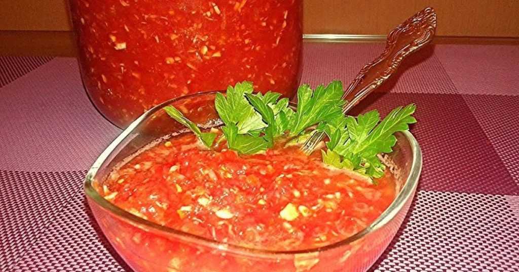 По такому рецепту соус получается нежным и очень сытным. Аджику вполне можно использовать в качестве гарнира или отдельного блюда, наподобие, икры.