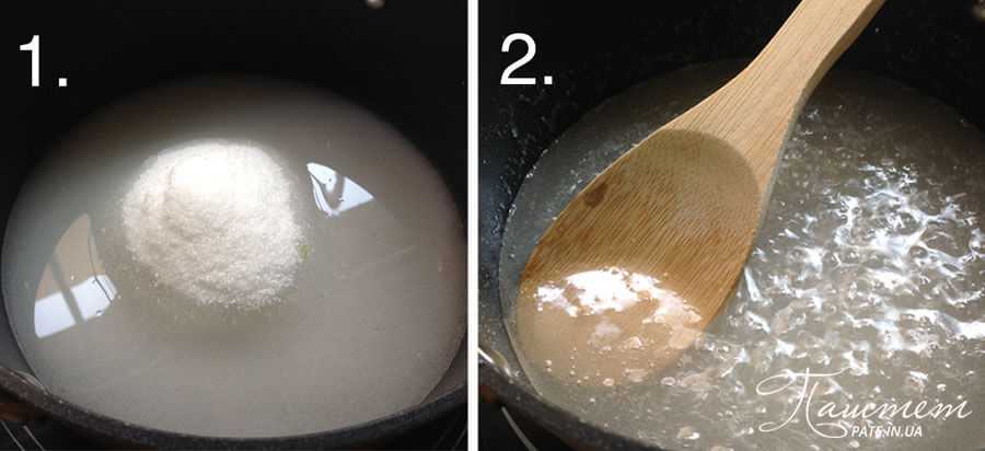 Шаг 3: сахар смешиваем с водой и варим сироп до полного растворения крупинок.