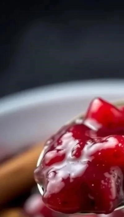 Шаг 4: Проверка готовности. Чтобы проверить готовность варенья, капните небольшое количество на холодную тарелку. Если капля не растекается, варенье готово. Удалите палочку корицы и стручок ванили.