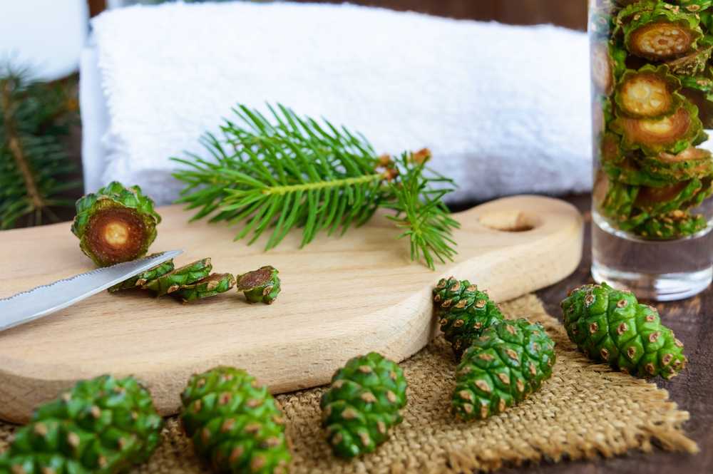 Первым делом необходимо правильно собрать основной компонент лекарственного средства. Зона произрастания сосны должна быть расположена вдали от крупных городов, промышленных производств, автомобильных трасс, не загрязнена другими источниками тяжелых металлов и токсинов. Лучшим эффектом обладают зеленые сосновые шишки, поэтому рекомендуется собирать их с мая по июнь. Подходящий размер – до 4 см, на ощупь мягкие. Дерево должно быть здоровым, без признаков заселения вредителями.