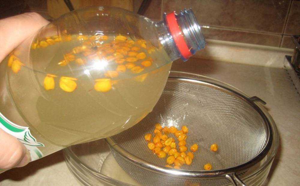 Даем настояться жмыху 2–3 часа, затем процеживаем его и смешиваем жидкость с облепиховым соком.