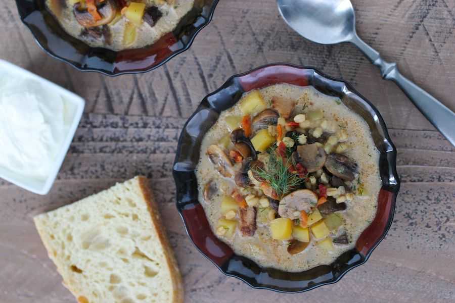 Один из самых успокаивающих супов – это суп из грибов и ячменя, и этот суп готовится из свежих, замороженных и сухих грибов, поэтому грибной вкус преобладает. Сливочный вкусный бульон, картофель, бекон, лук и грибы готовятся вместе, чтобы получился очень уютный и сытный обед.
