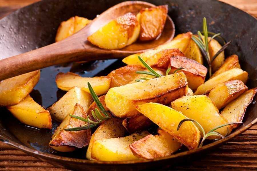 - Обжарка картошки в этом рецепте — это самый простой процесс. Самое главное условие здесь — не переборщить с количеством картофеля. Чтобы получилась именно жареная картошка, а не мягкое месиво, картофельных долек должно быть в 2 раза меньше, чем объем сковороды. Подбирайте посуду побольше. Дольки должны свободно перемешиваться. Лук добавлять не надо, он уже есть в грибочках. Обжарка занимает примерно 20-30 минут, потом по желанию можно добавить сливочное масло и обильно перемешать. Солить картофель тоже не надо, чтобы при соединении с грибами